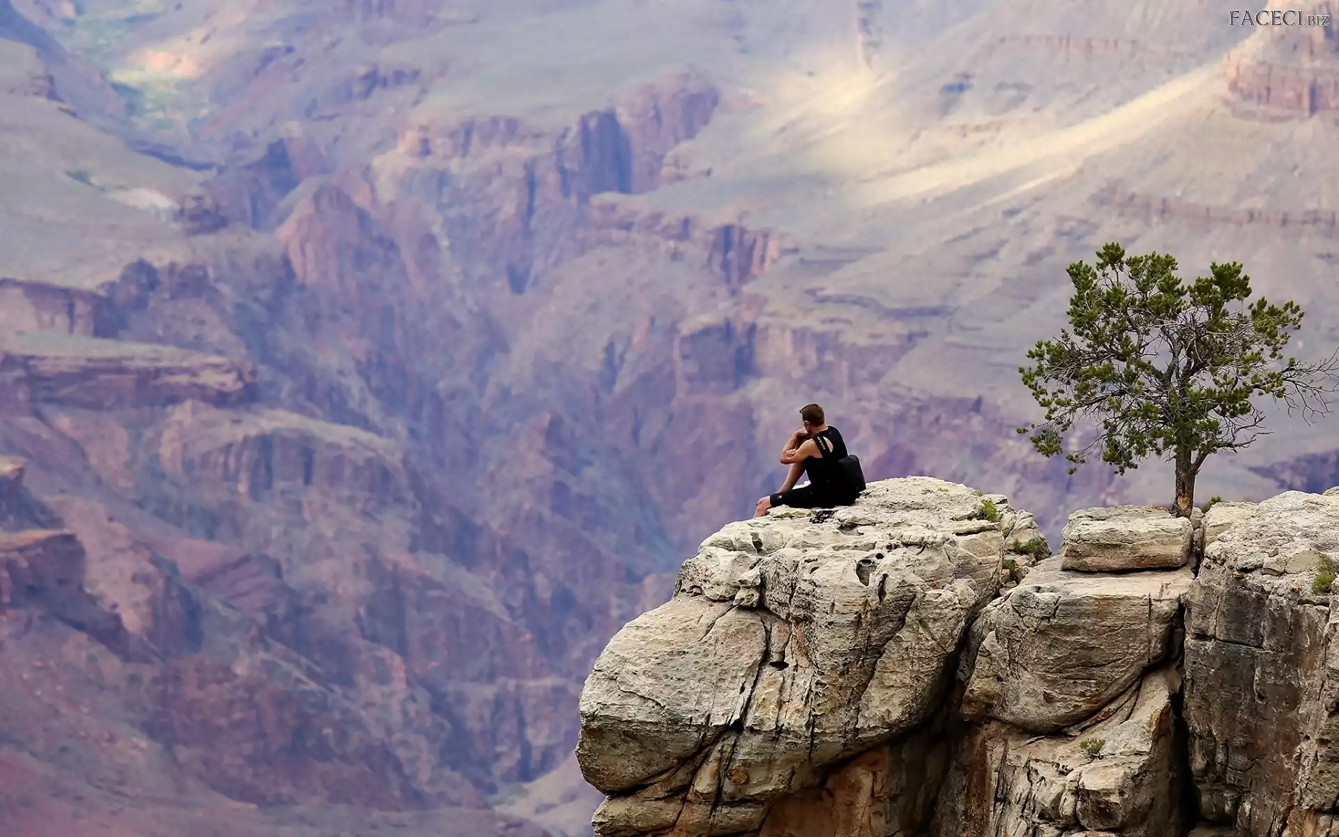 Skała, Turysta, Góry, Drzewo - faceci.biz
